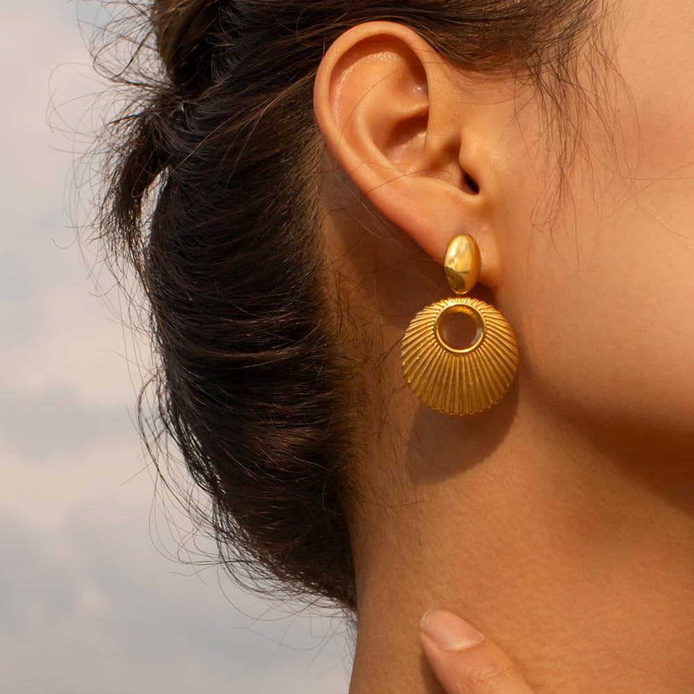 1 Piece Elegant Retro Solid Color Pleated Hollow Out 304 Stainless Steel 18K Gold Plated Drop Earrings For women & Girl’s Trendy