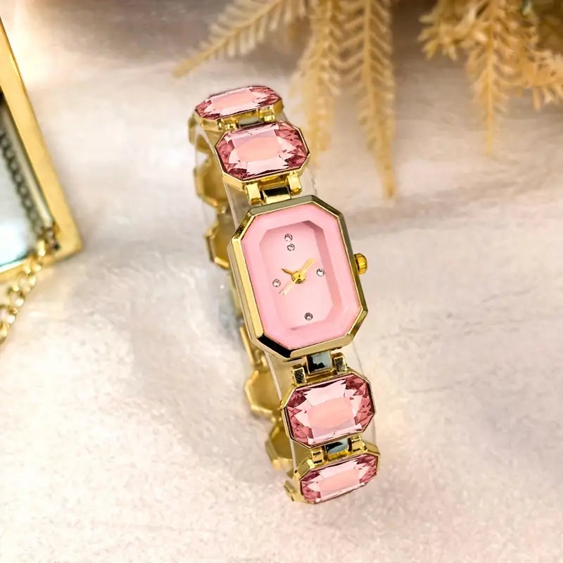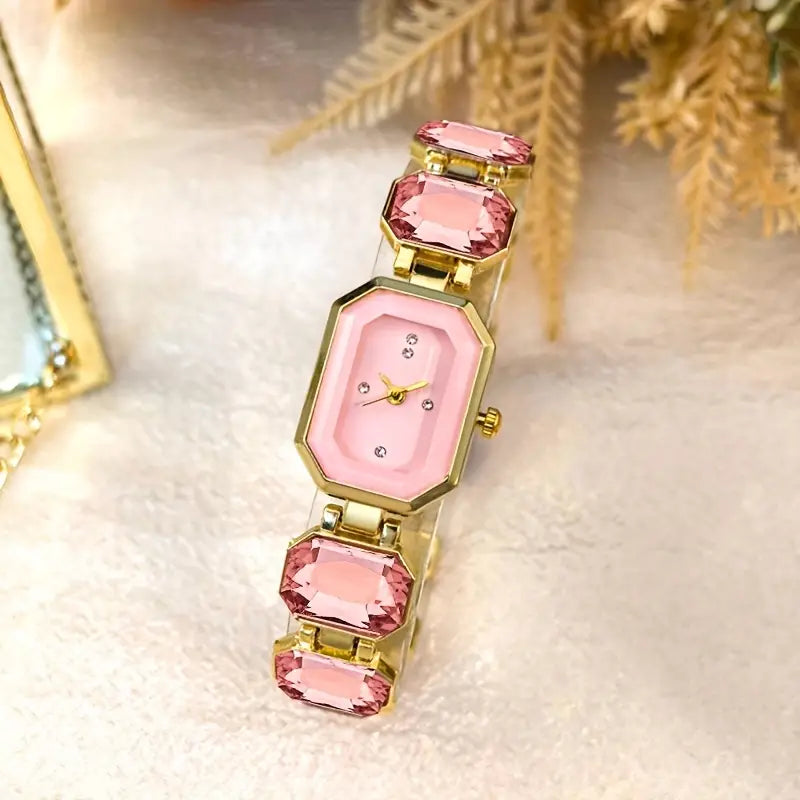 RAIRA Octagon Cut Bracelet, Pink, Rose Gold-Tone Finish Fancy Watch For Women & Girl's