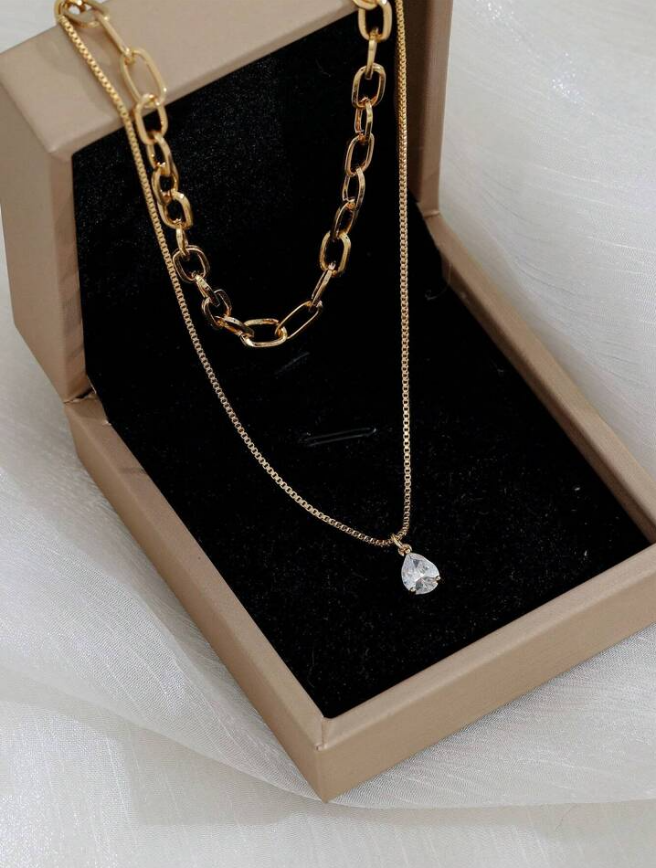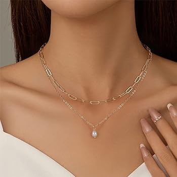 RAIRA 2-layer Paperclip Gold Chain and Freshwater Pearl Pendant Necklace for Women | 18K Gold-Plated Jewelry | Necklaces for Women & Girl's