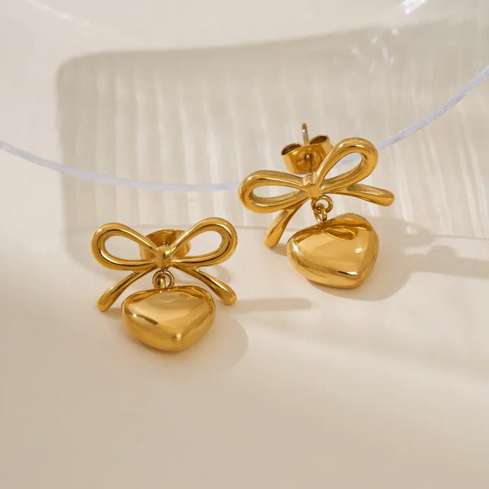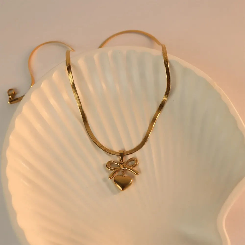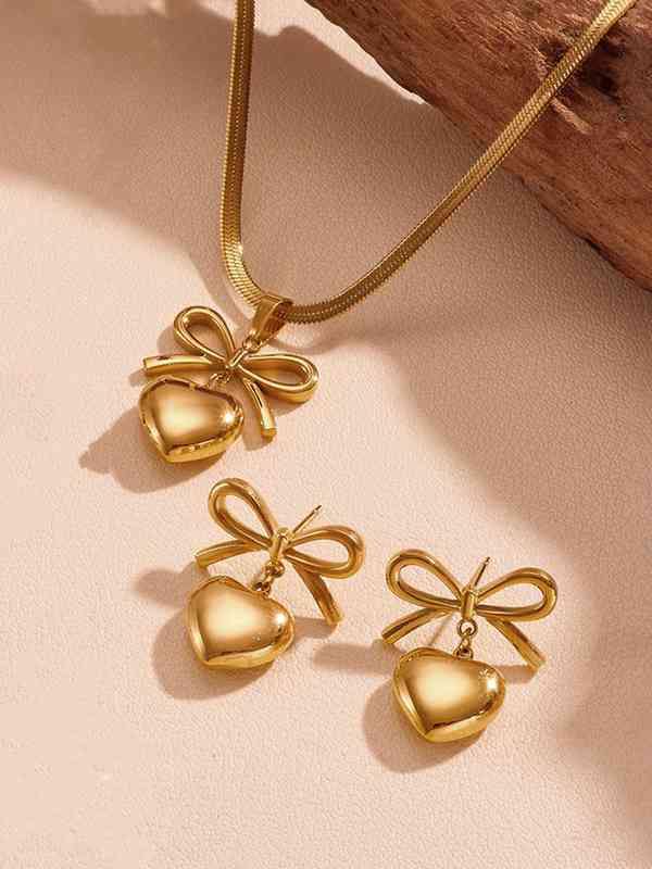 - Charming Bow-Heart Design: This Stainless Steel Waterproof Bow Necklace features a delicate bow-knot pendant and earrings, symbolizing grace and elegance. The intricate design adds a playful yet sophisticated touch to any outfit, making it a versatile addition to your jewelry collection.