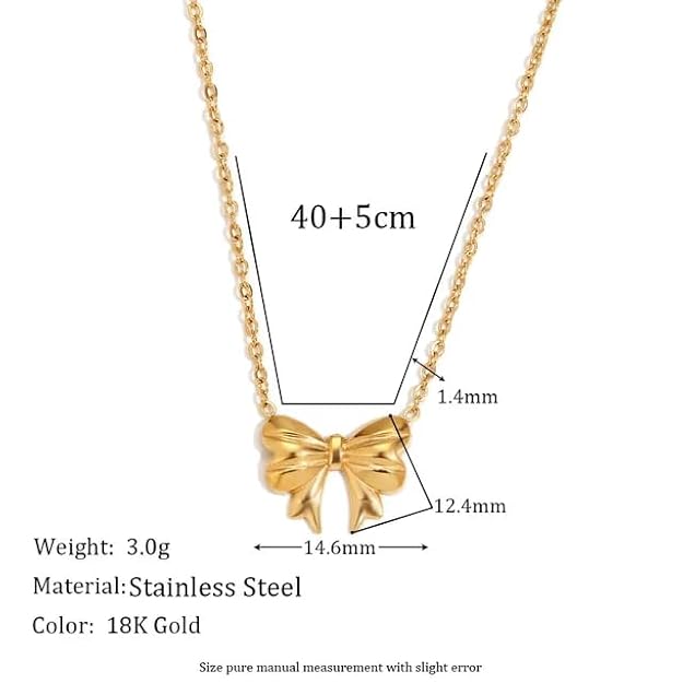 - Charming Bow-Knot Design: This Stainless Steel Waterproof Bow Necklace features a delicate bow-knot pendant, symbolizing grace and elegance. The intricate design adds a playful yet sophisticated touch to any outfit, making it a versatile addition to your jewelry collection.