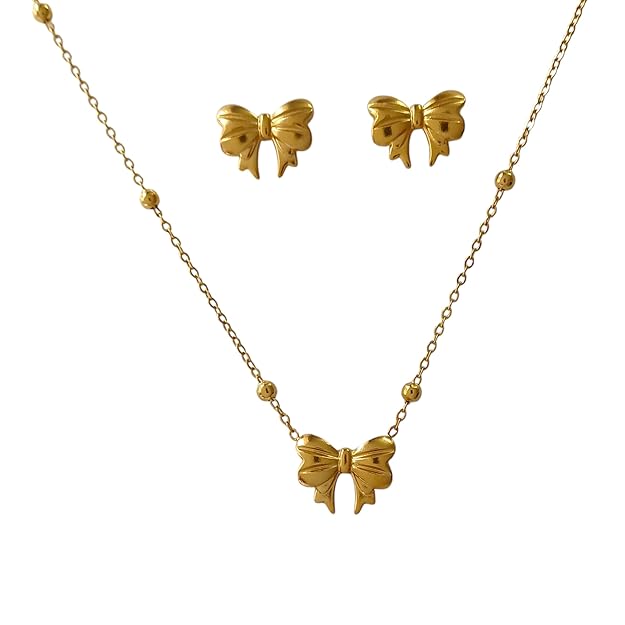 RAIRA Charm Bow-Knot Anti-Tarnish Gold-Plated Chain Necklace Stainless Steel Waterproof GIFT Set for Women and Girls