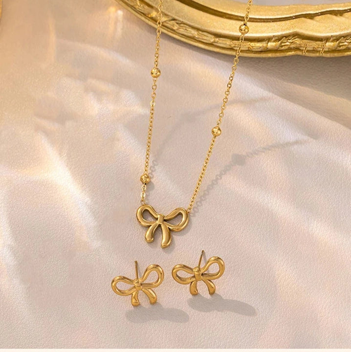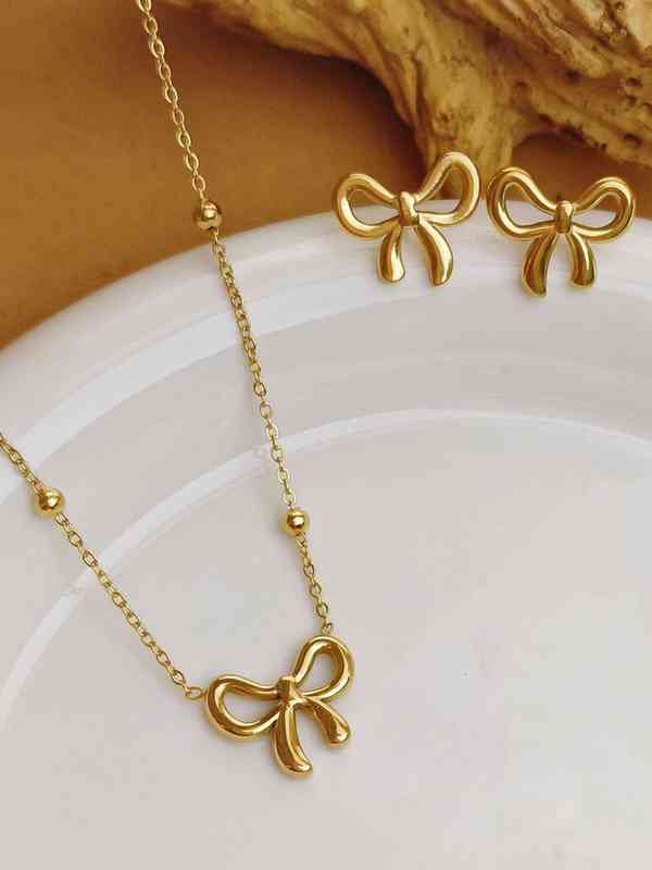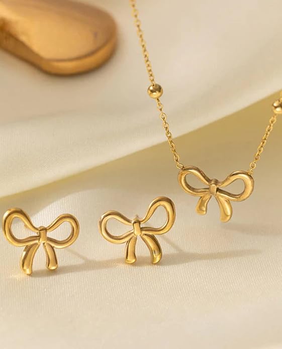 RAIRA Gold-Tone Bow Pendant Necklace & Earring Gift Set for Women & Girl's