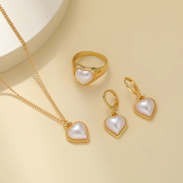 RAIRA Love Pearls Necklace Earrings Rings Jewelry Set Gift for Prom Girls Adjustable Jewelry