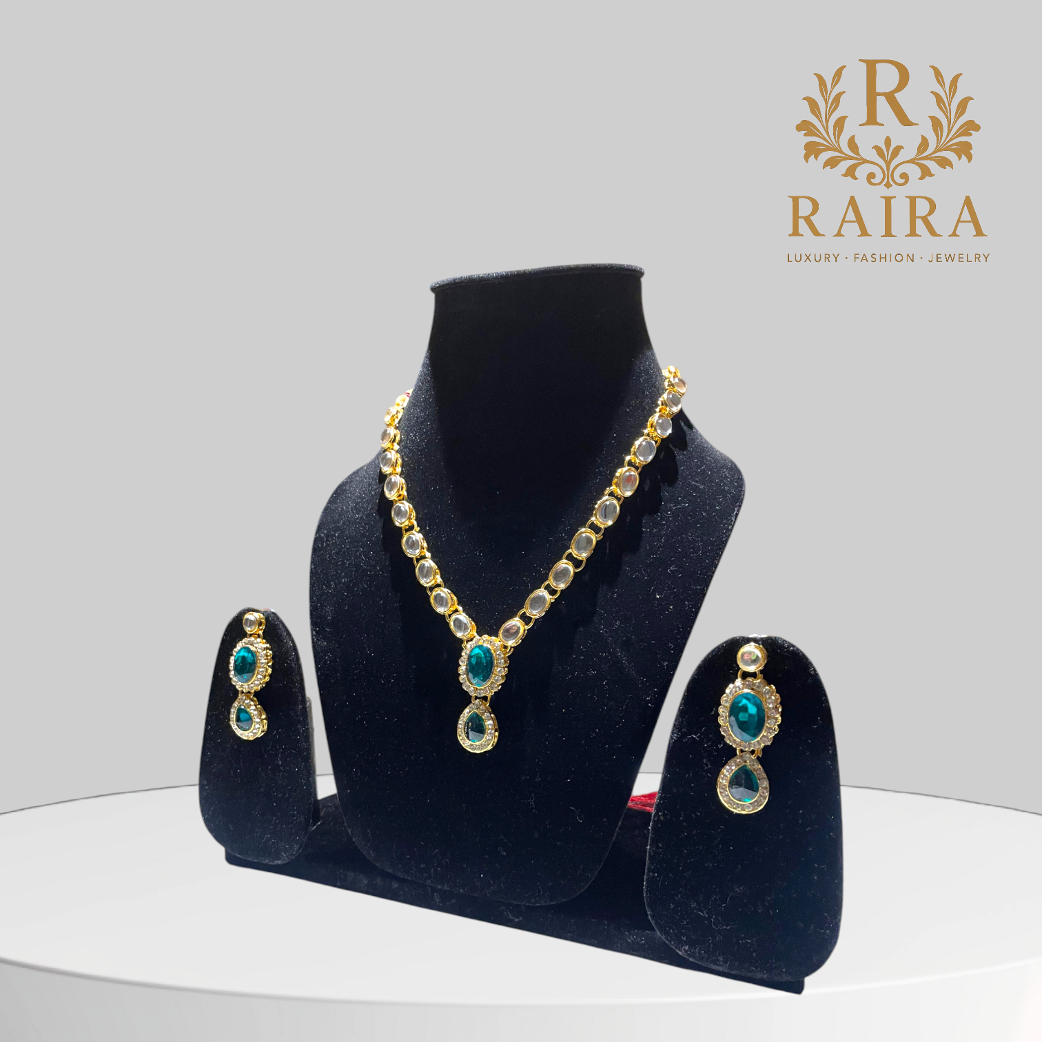 Flaunt your distinct style statement by wearing this necklace & earring set from the RAIRA. we also have an absolute range of jewellery set such as long necklace, layered necklace, multistrand necklace, choker, bib necklace, collar necklace, princess necklace, moti mala set. RAIRA pearls brings an exclusive assortment of fashion jewellery & accessories like kundan jewellery, pearls jewellery, radha krishna jewellery, silver or oxidi jewellery used for navratri, peacock inspired jewellery, floral jewellery, brass jewellery, vacation jewellery, casual jewellery, bridal jewellery, bridemaids jewellery, padmavati inspired jewellery, multi-color jewellery, minimal jewellery, traditional or ethnic jewellery, trendy, stylish & fancy jewellery, work wear jewellery, western jewellery, rose gold jewellery. this jewellery can be used for multiple events, occasions & ceremonies like festivals, mehandi, haldi, sangeet, engagement, wedding, destination wedding, reception, baby shower, party or fashion shows. it can also be best pick for trousseau or gifting.