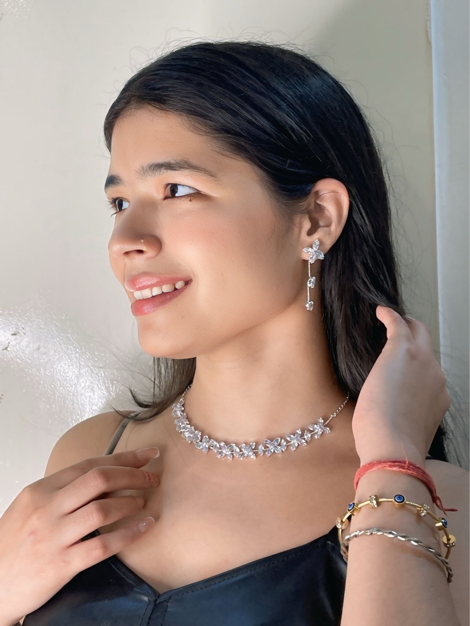 RAIRA Rhodium-Plated AD Studded Jewellery Set, Party wear Traditional Style Necklace