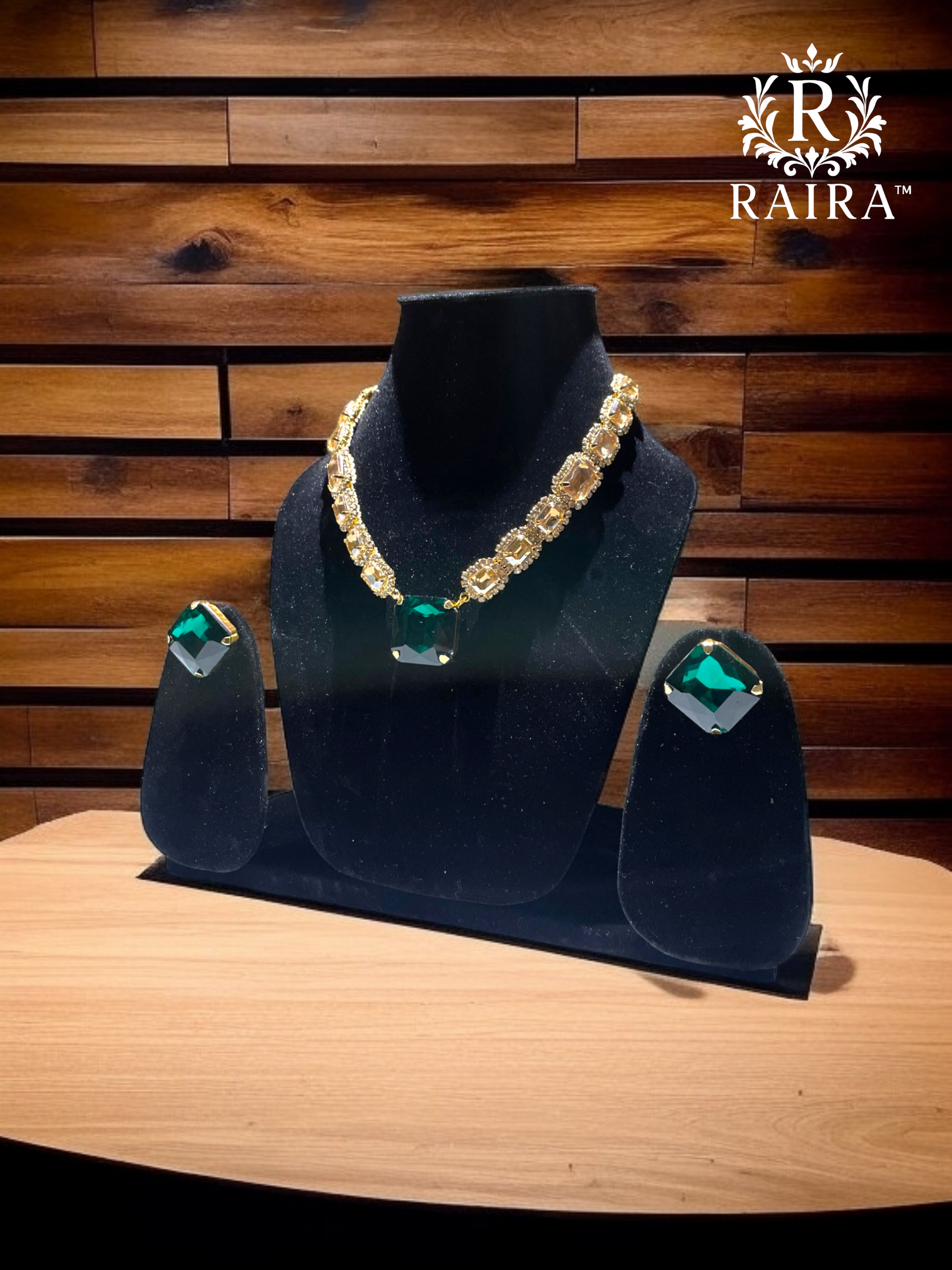 RAIRA Rhodium-Plated AD Studded Jewellery Set, Party wear Traditional Style Necklace