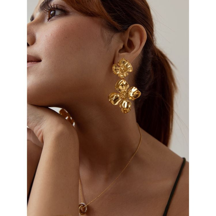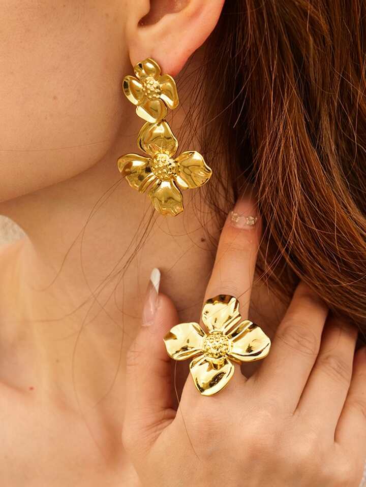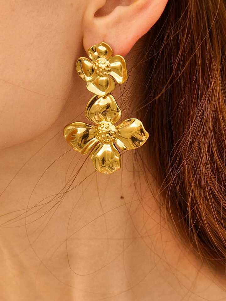 - Gold Flower Earrings:There are many types of fashionable gold earrings, including flower studs Earrings, ginkgo leaf earrings, double sunflower earrings, butterfly earrings and more!