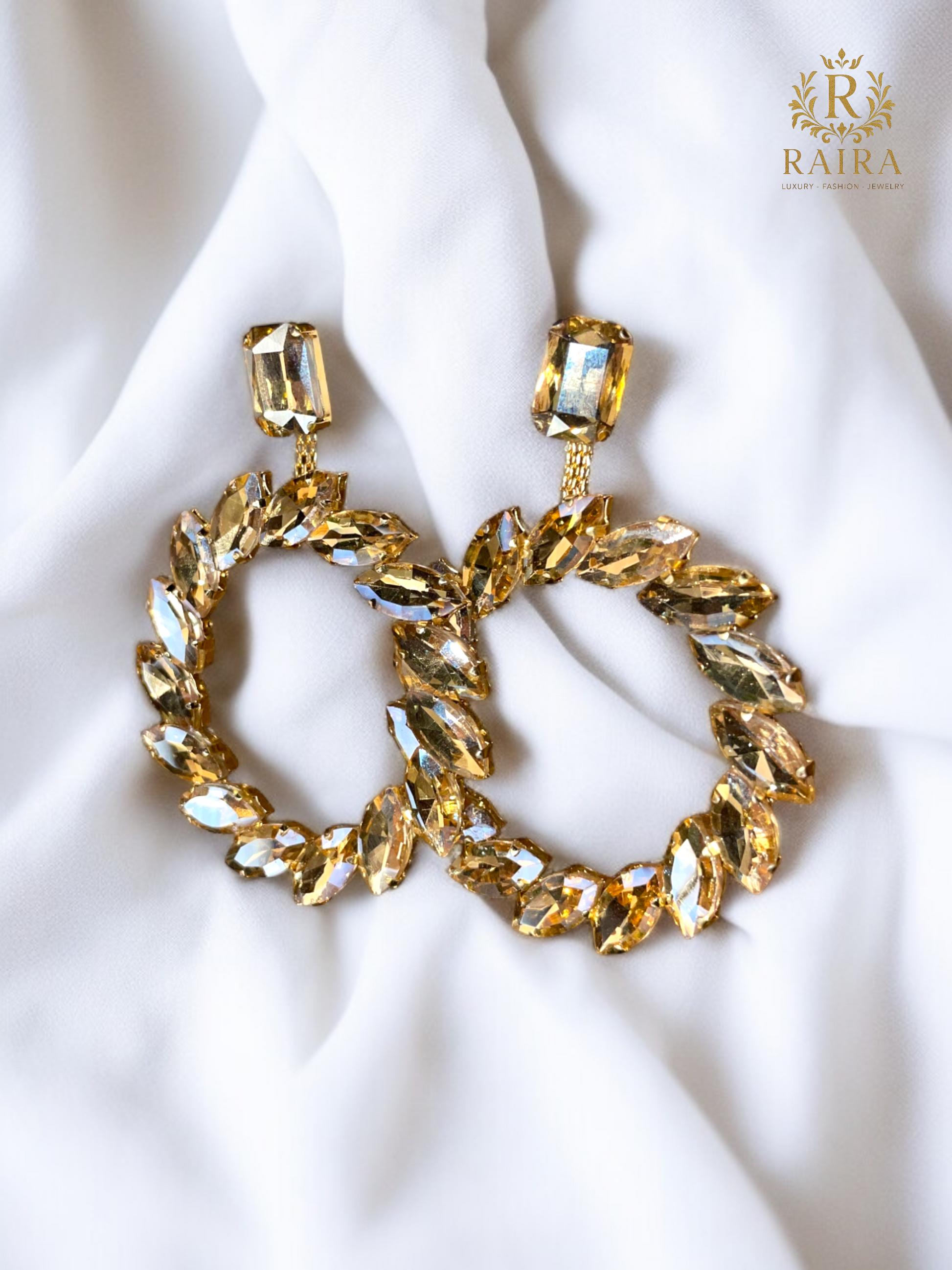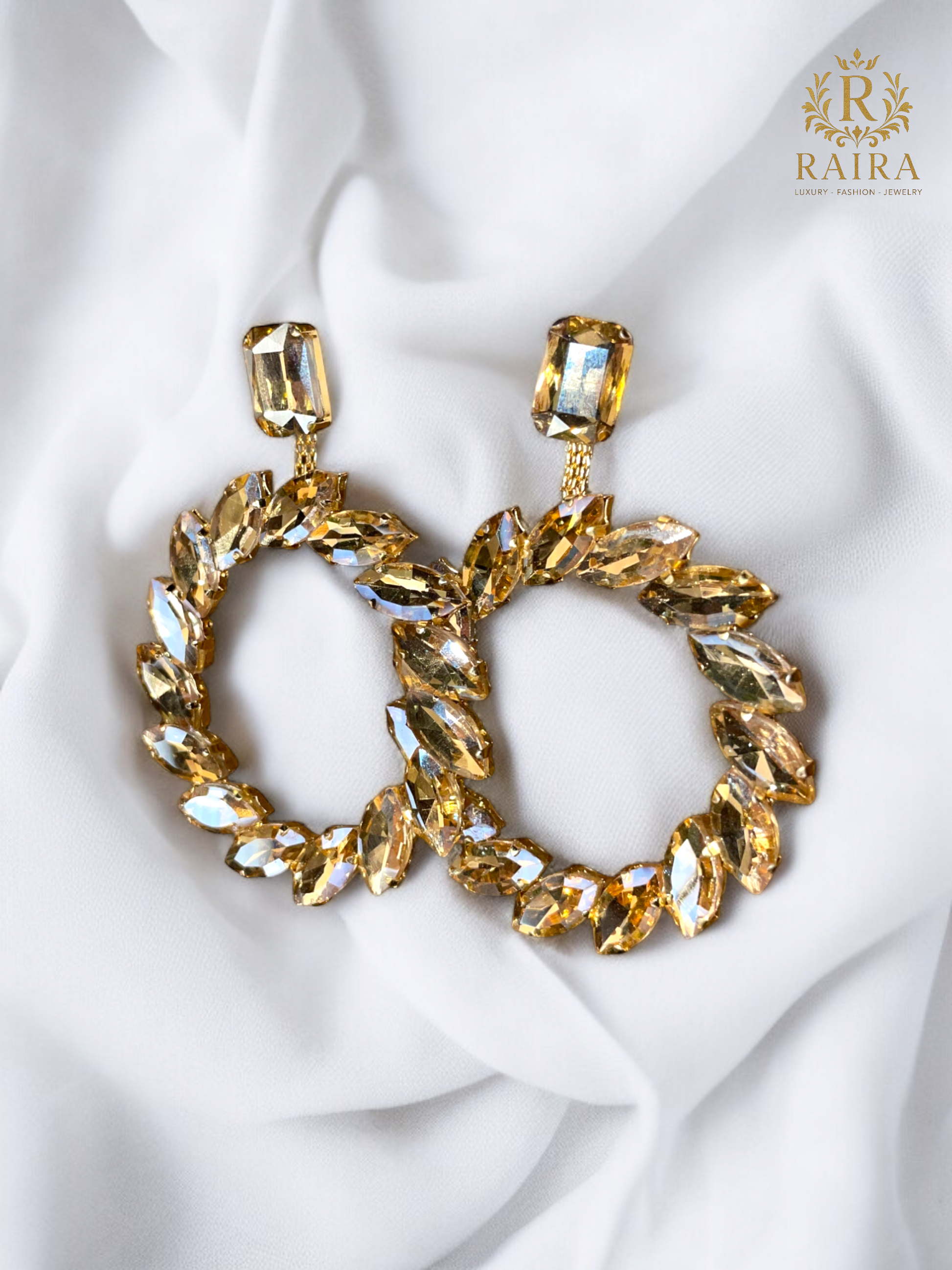 RAIRA Women Party wear westren Crystal Hoop Earring | Golden for Women & Girls