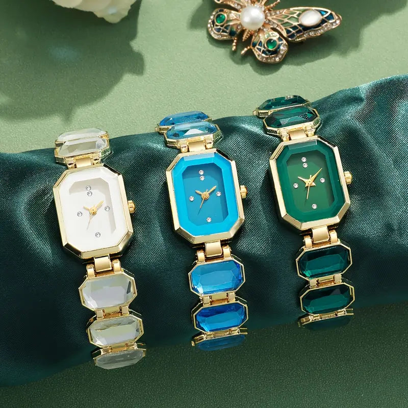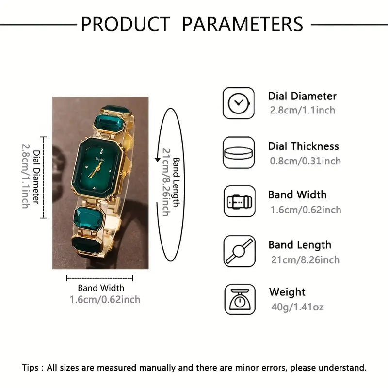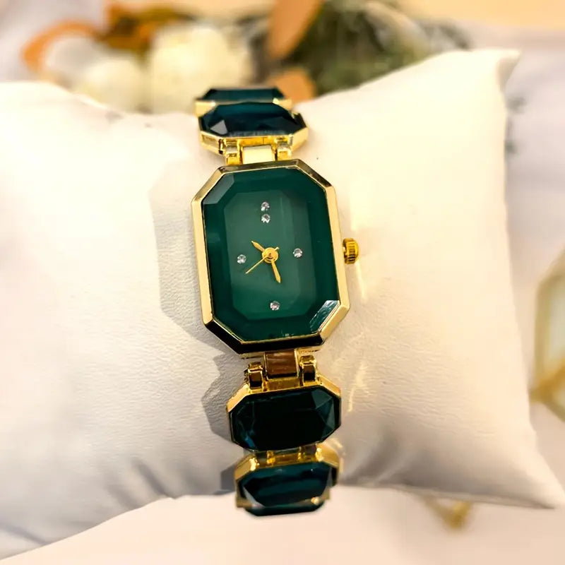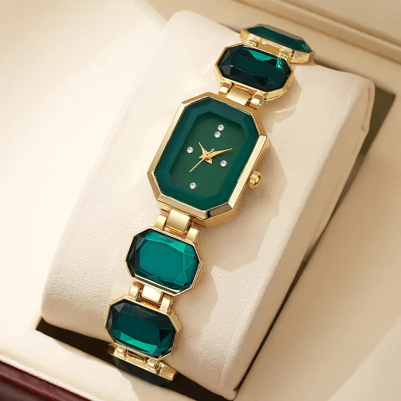 RAIRA Women's Emerald Green Square Watch with Golden-Tone Zinc Alloy Case & -Accented Bracelet Band - Quartz Movement,