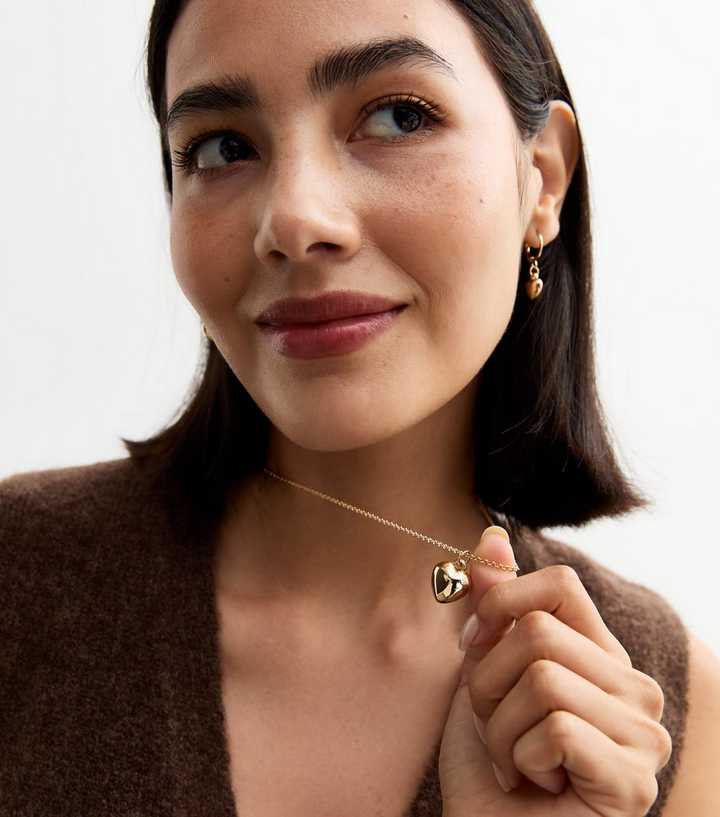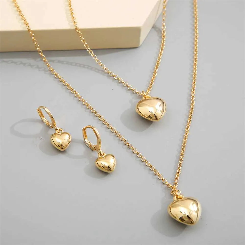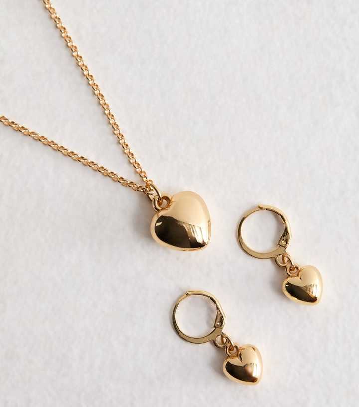 - Elegant heart-shaped pendant necklace, bracelet, and huggie earrings set